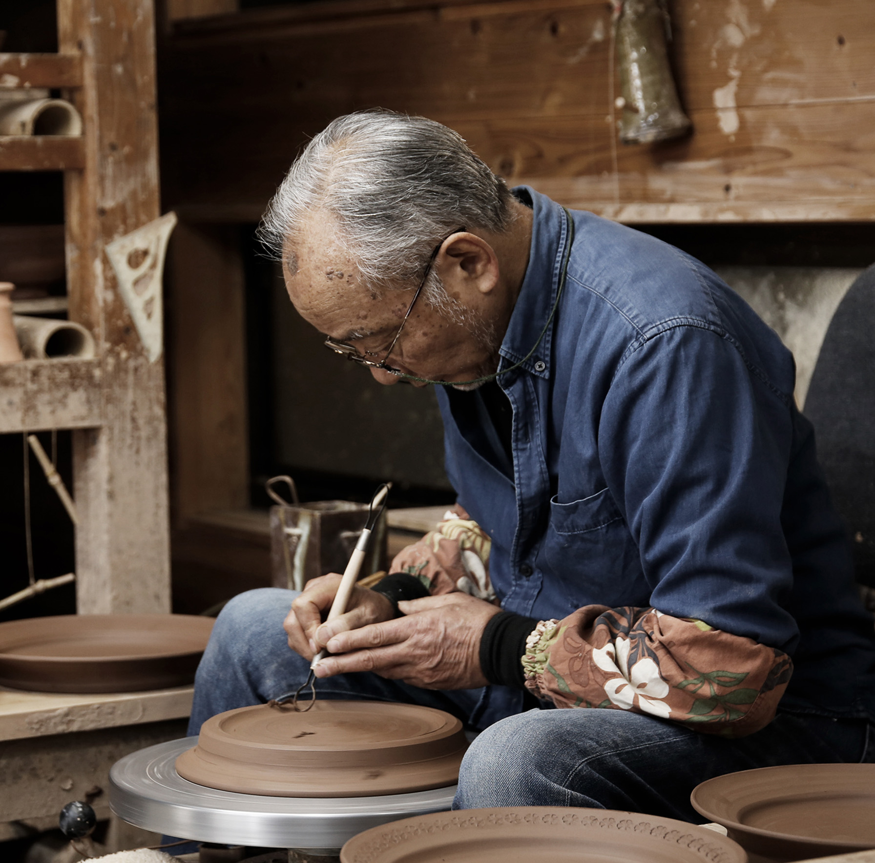 相良藩の御用窯だった一の成なり田た勝かつ人とさんの下で焼き物を学び始めた西にし 川かわ講こう生せいさん。