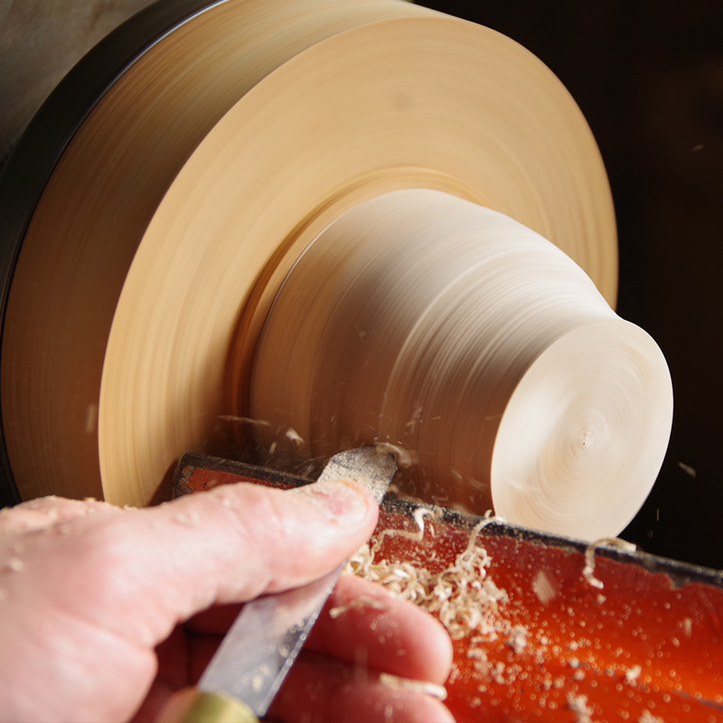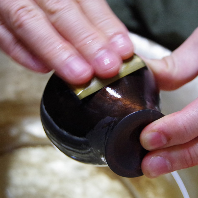ジャンル 木工品 工芸品名 木工 指さし物もの 地域 (熊本市) 氏名 戸と田だ純じゅん一いち 工芸家プロフィール 1971年 生誕。 父戸田東蔭に師事し、木工芸・日本画を学ぶ。 1994年 熊本県美術協会展初入選、以後入選・入賞。 1995年 西部伝統工芸展初入選・以後入選・入賞。 1998年 日本伝統工芸展初入選。 2005年 第52回日本伝統工芸展入選作品 宮内庁買上。 2013年 日本工芸正会員認定。 熊本県美術協会展、西部伝統工芸展など入選・入賞。 第52回日本伝統工芸展入選作が宮内庁買上に。 熊本県美術協会会員、熊本県美術家連盟会員、日本工芸会正会員。 工芸家紹介TOP/HOME 製作工程紹介戸田純一氏 製作工程 ▼ 1.材料 充分に乾燥した材を粗彫りし数か月寝かせる。 2.木工旋盤による成型 木工旋盤を使い材を高速で回転させ、刃物で成型する。 3.木地の完成 4.生漆を木地に塗り、余分な漆は拭き取る 生漆 5.乾燥させる 完全に漆が乾くまで数日間ムロ(漆の乾燥室)の中で乾燥させる。 漆の乾燥に最も適した環境は、湿度70〜85%、温度24〜28度なので、ムロの壁に霧吹き等をし湿度を調整する。 6.漆が乾いた木地 7.研ぎ 耐水ペーパーで表面を整える(研ぎ)。 8.研ぎが済んだ木地 9.塗り・乾燥(繰り返し) 塗りと乾燥を数回繰り返すごとに研ぎを行う。 10.完成 材の種類等によって回数は異なるが、おおよそ20回ほど塗りを繰り返して完成。 工芸家紹介TOP/HOME インタビュー記事(2010年頃) 純一さんが木工指さし物もの・挽ひき物もの)・刳くり物ものを始めたのは22歳の時。異素材で加飾していく父・戸と田だ東とう蔭いんさんとは異なり、木の美しさを形や仕上げで表現していくのが純一さんの特徴です。ちなみに指物とは鉄くぎを使わず、木と木を巧妙に継ぎながら強度を保つ伝統工芸品です。最初に図面を起こして厚紙で原型を作り、大きさのバランスやデザインの配置を計算していきます。 「木の目を組み合わせたり、木を使って象嵌(ぞうがん)したり。木の魅力をどれだけ引き出せるかに重点を置いています」これからも奇をてらうことなく、箱物や盛器など昔から存在する造形物を作り続けていきたいと語ります。「伝統的なカタチの制約の中で、いかに今までにない物を作り出せるか。その可能性を広げていきたいんです」 工芸家紹介TOP/HOME